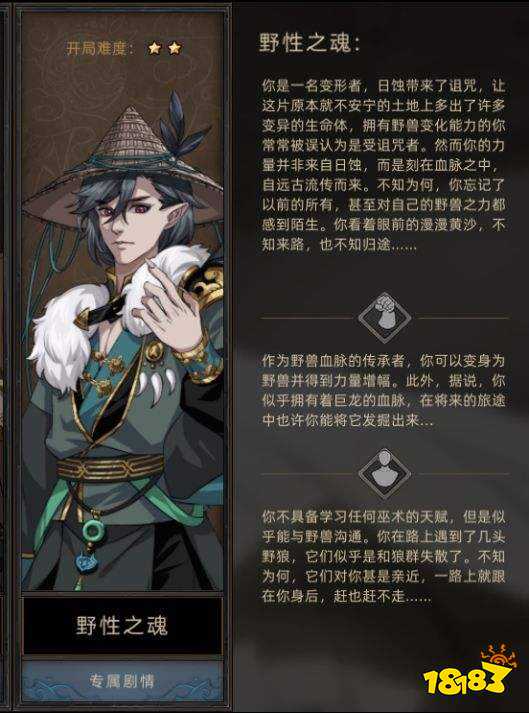 野性之魂的特色是可以变身其他动物进行攻击◈✿✿,每种动物都有自己的特色◈✿✿,狼(流血)蜘蛛(吸血)猎鹰(闪避)龙(范围攻击)且每种变身的技能都可以提高自身的属性日本1卡2卡3卡◈✿✿,是不折不扣的数值怪◈✿✿,特化部队是野兽